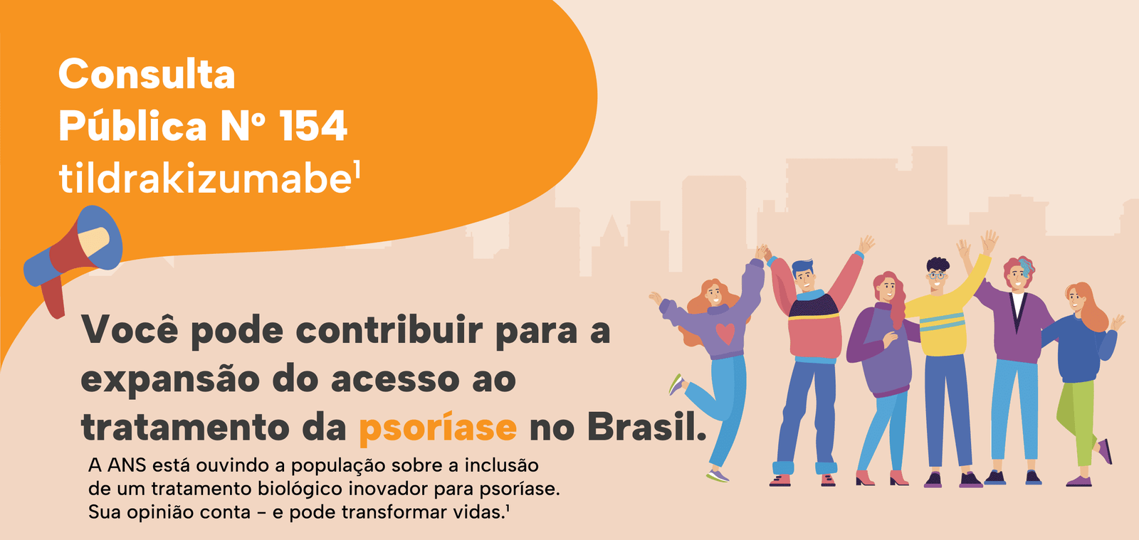 A Consulta Pública é um processo aberto em que a ANS ouve a sociedade antes de tomar decisões. É sua chance de se manifestar sobre a inclusão de novos tratamentos na cobertura dos planos de saúde, como é o caso do tildrakizumabe para psoríase em placas moderadas a grave.¹